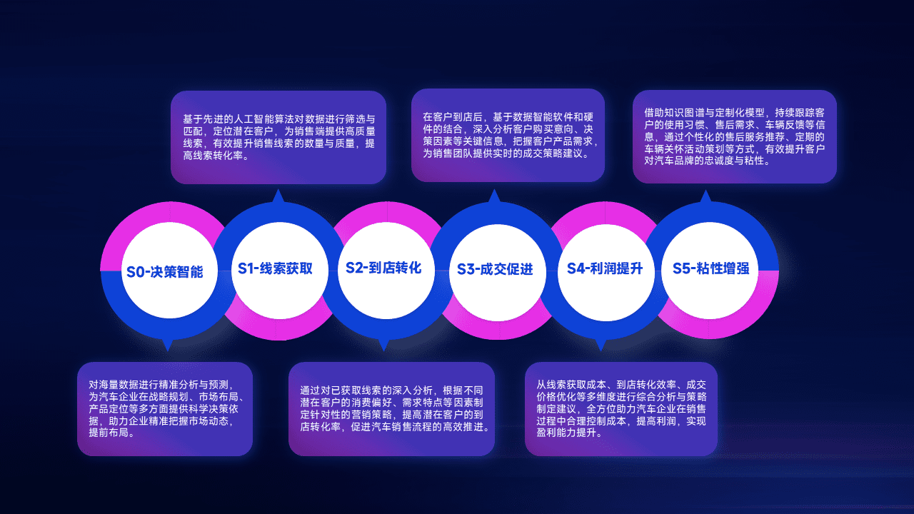 通过拓宽潜在客户来源、、优化线索分配并提高到店转化率,,,,以增强销售效率。。。。同时,,,利用线索数据不断优化分析模型,,,,有效提升转化率,,扩大营销影响力。。。